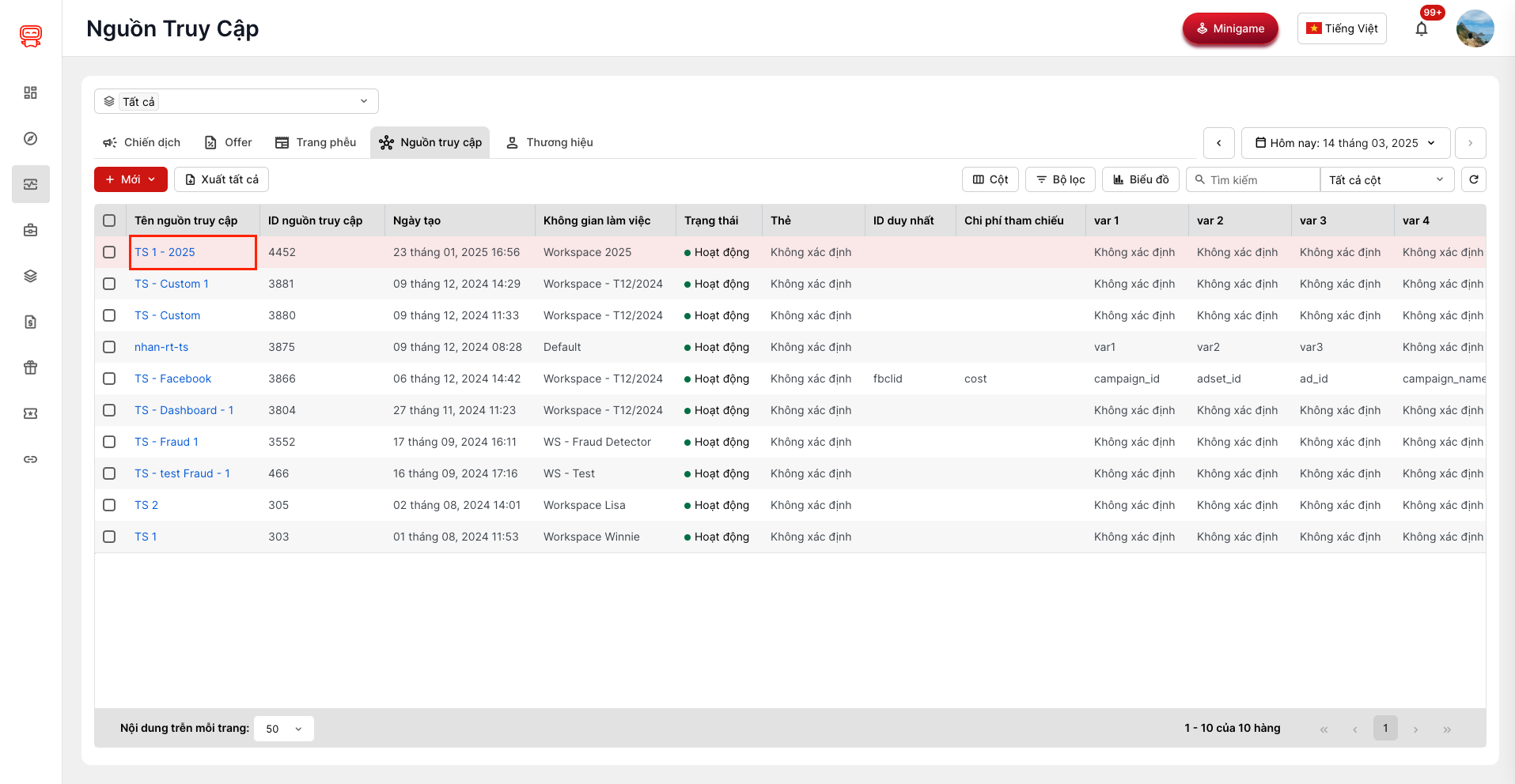 Việc quản lý Nguồn truy cập hiệu quả giúp tăng cường hiệu suất chiến dịch và tối ưu hóa lợi nhuận với Permate. Bằng cách sử dụng Tag, bạn có thể tổ chức và tìm kiếm Nguồn truy cập nhanh chóng. Việc theo dõi báo cáo giúp đánh giá hiệu quả của từng nguồn traffic, từ đó tối ưu hóa chiến dịch quảng cáo. Đồng thời, cập nhật thông tin Nguồn truy cập thường xuyên giúp duy trì độ chính xác của dữ liệu và đảm bảo rằng bạn luôn có chiến lược phù hợp với sự thay đổi của thị trường.