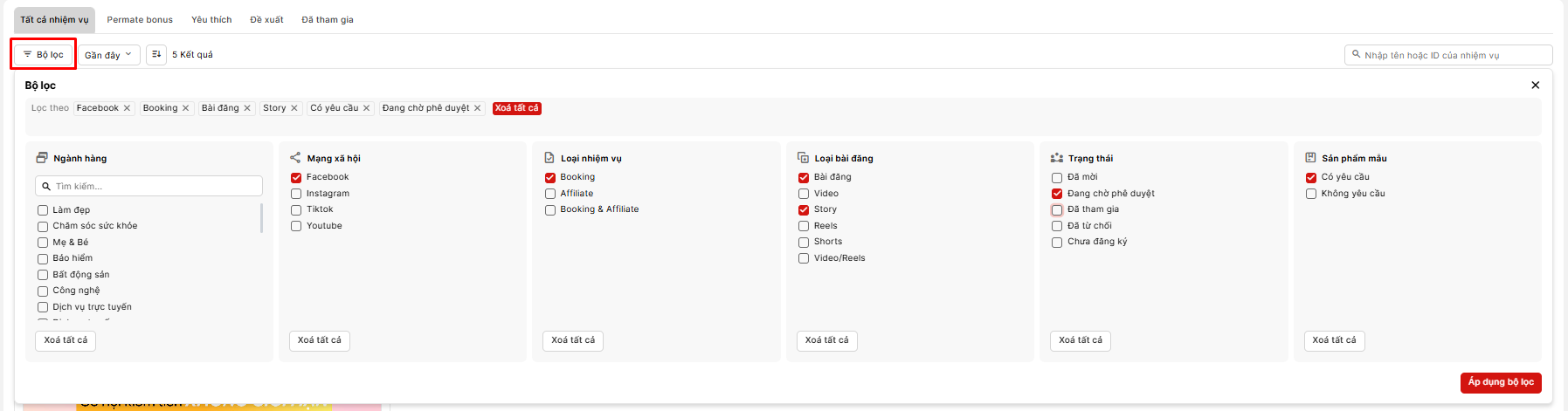 - Hệ thống cho phép lọc theo các tiêu chí: