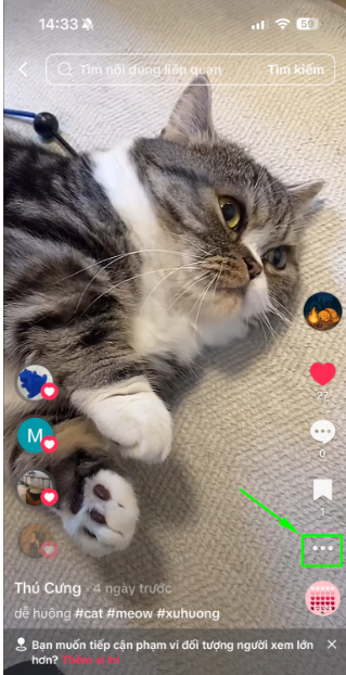 Bước 2: Mở menu tùy chọn: Nhấn vào biểu tượng ba chấm (…) hoặc dấu mũi tên chia sẻ ở góc dưới bên phải màn hình.