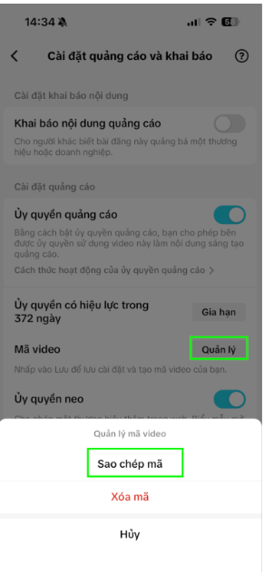 Hướng dẫn lấy mã hợp tác quảng cáo khi thương hiệu đề nghị hợp tác với Creator.