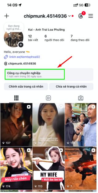 Bước 1: Truy cập vào trang cá nhân, chọn Bảng điều khiển chuyên nghiệp (Professional Dashboard).
