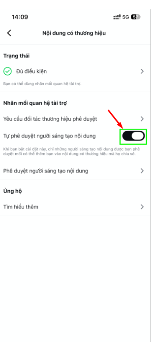 Trước khi bắt đầu, bạn cần kích hoạt quyền cho phép nội dung có thương hiệu: