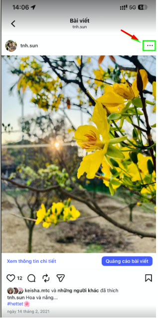 Bước 2: Nhấn vào biểu tượng ba chấm (…) ở góc trên bên phải bài viết.