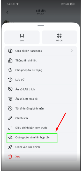 Bước 3: Chọn Quảng cáo và nhãn hợp tác (Ads and Partnership Label).