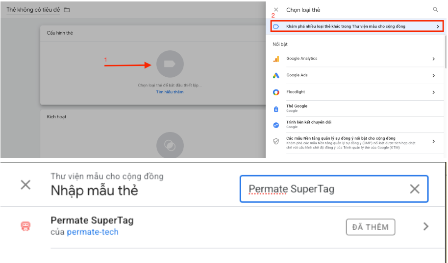 (Khám phá thêm các loại tag trong Community Template Gallery) - Tìm kiếm với từ khóa “permate supertag”, sau đó thêm Tag vào workspace của bạn