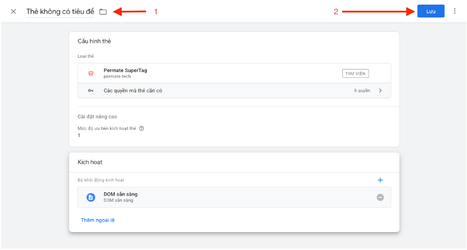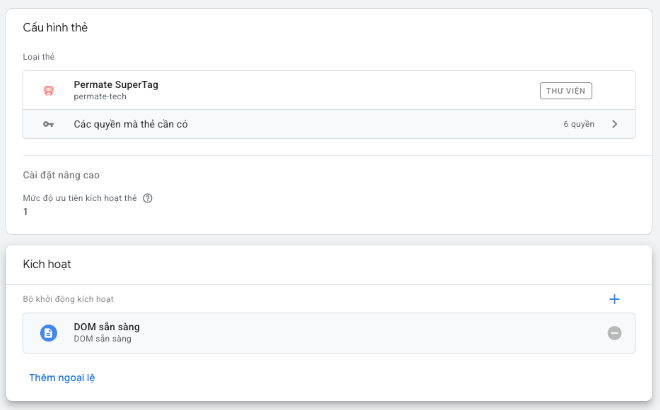- Tag này cũng cần sử dụng Trigger kích hoạt tất cả sự kiện DOM Ready, giống như Permate SuperTag