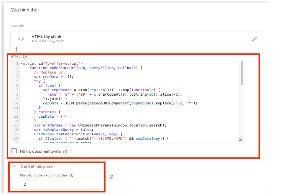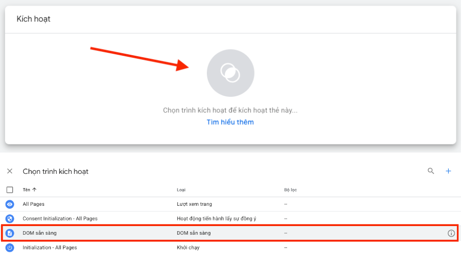 - Tag này cần sử dụng Trigger kích hoạt ở tất cả sự kiện DOM Ready