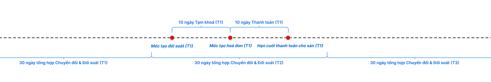 Trong khoảng thời gian 30 ngày, bạn cần tạo đối soát. Ngày bạn tạo đối soát sẽ được ghi nhận là ngày bắt đầu của giai đoạn tạm khóa (10 ngày đầu tiên).