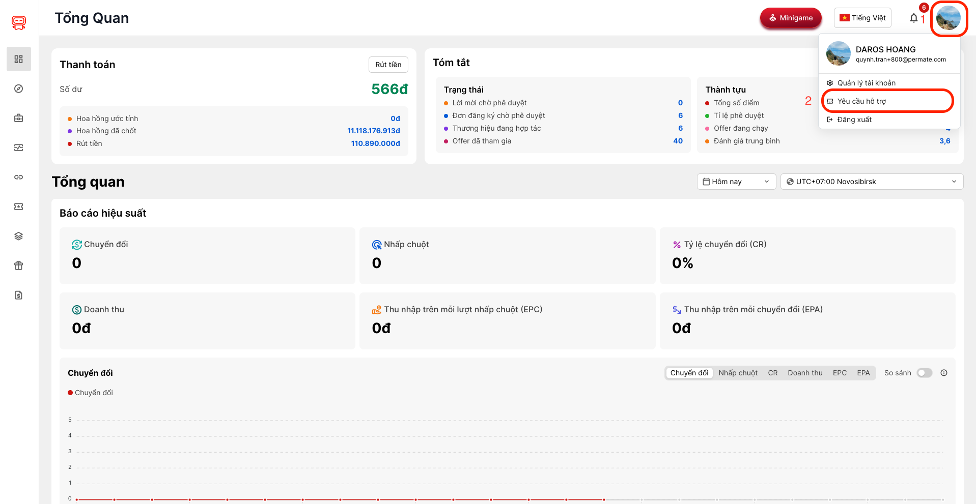 Hệ thống hỗ trợ ticket giúp người dùng giải quyết các vấn đề liên quan đến tài khoản, chiến dịch, doanh thu, đối soát và các khía cạnh khác trong quá trình hợp tác với sàn affiliate. Dưới đây là các mục cụ thể mà bạn có thể cần đến sự hỗ trợ.