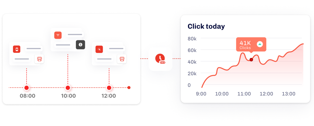 Theo dõi sự biến động về lượt nhấp, lượt chuyển đổi và ROI qua từng giai đoạn. Nắm bắt xu hướng để đưa ra quyết định đầu tư hiệu quả hơn.