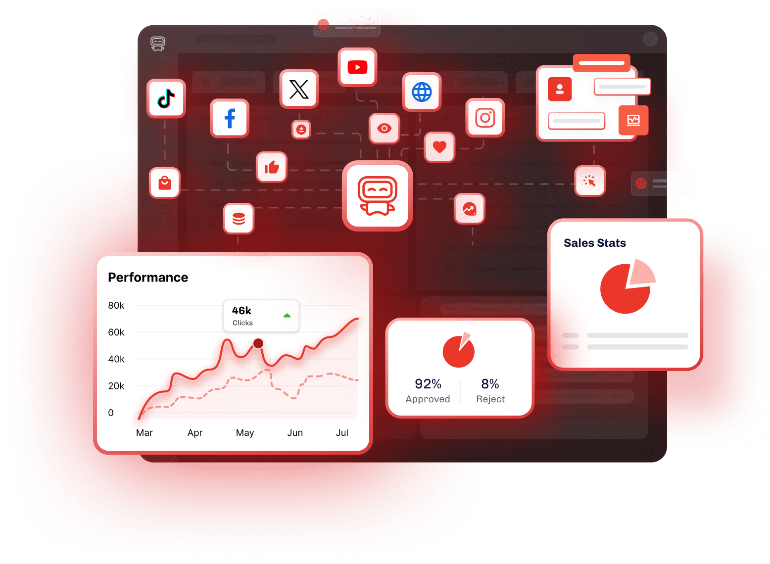 Công nghệ chống gian lận tự động lọc bỏ lưu lượng giả mạo, click ảo hoặc nguồn không đáng tin cậy, giúp Agency bảo vệ dữ liệu và giữ vững uy tín khi hợp tác với Brand.